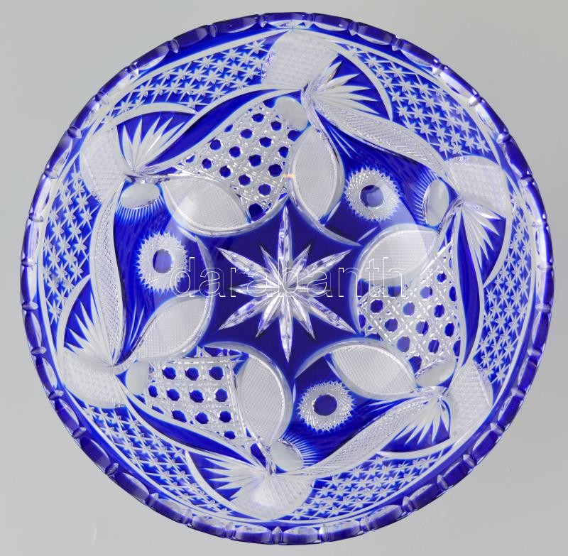 Leírás: Csiszolt ólomkristály tál, két rétegű, jelzés nélkül, hibátlan, d:25 cm, m: 11 cm