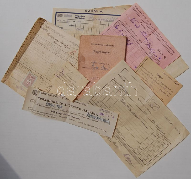 Leírás: 9 db régi számla, nyugta, átvételi jegy,száálitási jegy ...