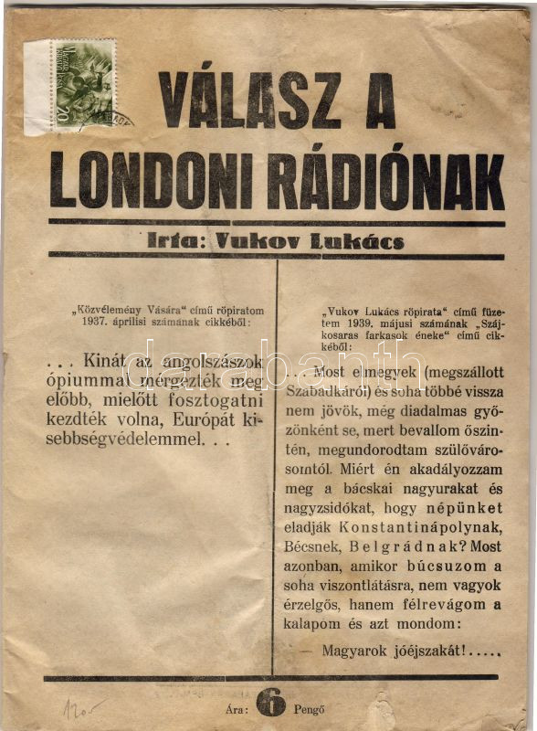 Leírás: Válasz a Londoni Rádiónak propagandakiáltvány