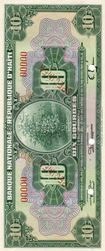 Haiti cca 1951-64. 10G "O" szériás "Specimen" + 3-as lyukasztás T:I RR... https://www.darabanth.com/hu/36-Gyorsarveres/36.0/Numizmatika/Magyar-es-kulfoldi-bankjegyek~73/Haiti-cca-1951-64-10G-O-szerias-Specimen-plus-3-as-lyukasztas-TI-RR~II71733