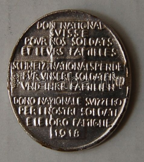 Leírás: Svájc 1918. Katonai ezüstözött fém ovális plakett T:2 Szign:Hans Frei