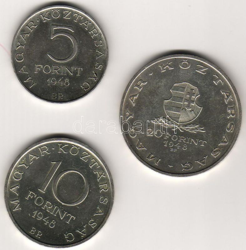 Leírás: 1946. "Szabadságharc" 5Ft + 10Ft + 20Ft ezüst T:2