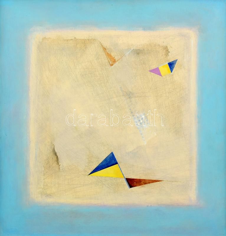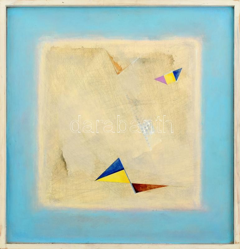 Gyulai Lajos (1945-): Zászlók (cím nélkül), 2006. Olaj, fa. Jelzett a hátoldalán. Fa keretben. 40x37,5 cm. / Oil on wood, signed on the reverse, framed