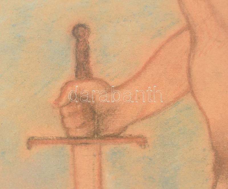Kézdi-Kovács Lóránt (1872-1932): A háború allegóriája, 1914. Pasztell, vöröskréta, papír, jelzett és datált. Proveniencia: Kézdi-Kovács László (1864-1942) festőművész és műkritikus) gyűjteményében, majd fia, Kézdi-Kovács Elemér (1898-1976) gyűjteményében és hagyatékában. Üvegezett fa keretben, 70×51 cm. Kézdi-Kovács Lóránt apja, Kézdi Kovács László nyomdokain festőnek készült a Képzőművészeti Főiskolán. Az 1914-ben készült művét a készülődő vagy már kirobbanó világégés inspirálhatta a szecesszió, a késő szimbolizmus stílusának jegyeit viselő alkotására. A sors ironiája, hogy Kézdi-Kovács Lóránt mindössze 19 évesen, 1916-ban az I. világháborúban esett el, amelynek következtében az életműve is nagyon korán lezárult. Munkái nagyon ritkán tűnnek fel a műkereskedelemben, igazi gyűjtői darab!