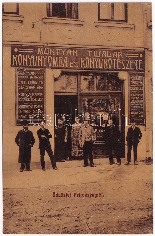 Leírás: Petrozsény, Petrosani; Muntyán Tivadar könyvnyomda és könyvkötészet üzlete és saját kiadása / book printing and bookbinding shop