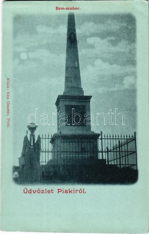 Piski, Simeria; Bem szobor. Kass Gusztáv kiadása / statue https://www.darabanth.com/hu/36-Nagyaukcio/36.1/Kepeslapok/Erdely~15418/Piski-Simeria-Bem-szobor-Kass-Gusztav-kiadasa-statue~II2468499