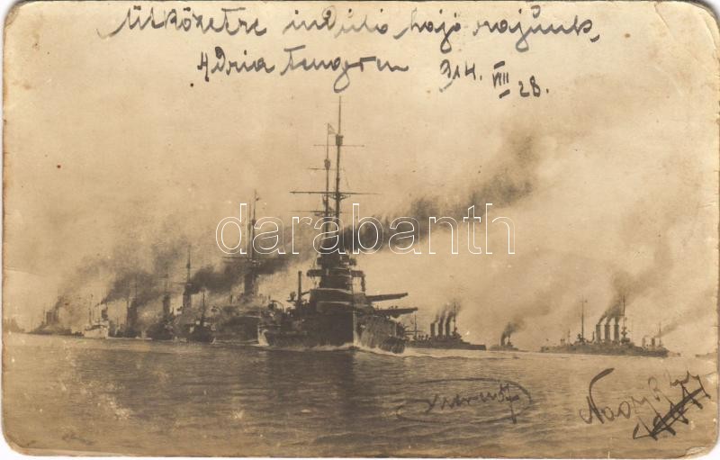 Leírás: 1914 Ütközetre induló osztrák-magyar hadihajó rajunk az Adriai tengeren / K.u.K. Kriegsmarine / Austro-Hungarian Navy battleships. photo (kopott sarkak / worn corners)
