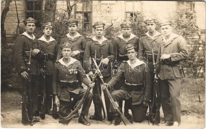 Magyar Királyi Folyamőrség matrózai szuronypuskákkal / Mariners of the... https://www.darabanth.com/hu/36-Nagyaukcio/36.1/Kepeslapok/Hadihajo~15487/Magyar-Kiralyi-Folyamorseg-matrozai-szuronypuskakkal-Mariners-of-the-Hungarian-Royal-River-Gu~II2491570