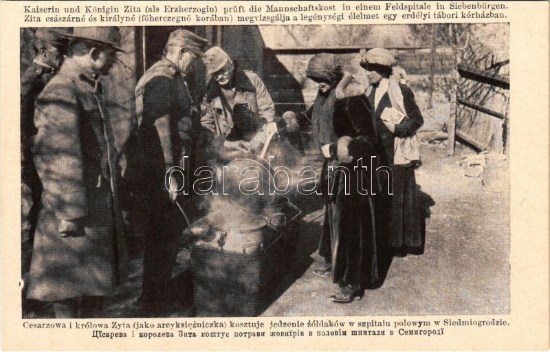 Kaiserin und Königin Zita (als Erzherzogin) prüft die Mannschaftskost in einem Feldspitale in Siebenbürgen / Zita császárné és királyné (főhercegnő korában) megvizsgálja a legénységi élelmet egy erdélyi tábori kórházban / WWI Empress and Queen Zita of Bourbon-Parma (wife of Charles I of Austria) inspects the lunch of soldiers at a Transylvanian K.u.K. field hospital