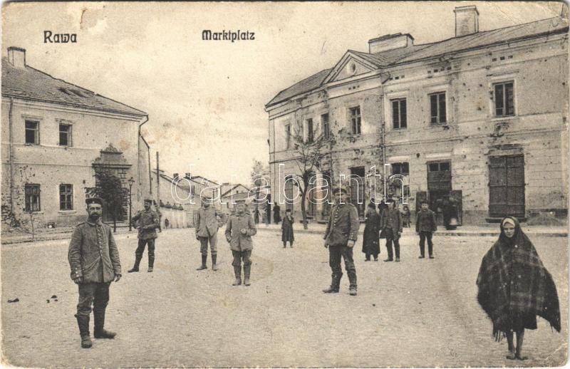 1915 Rawa Mazowiecka; Marktplatz / Pilsudski Square, German soldiers. ... https://www.darabanth.com/hu/36-Nagyaukcio/36.1/Kepeslapok/Lengyelorszag~15456/1915-Rawa-Mazowiecka-Marktplatz-Pilsudski-Square-German-soldiers-Aufn-von-Jakubowski-EK~II2336415