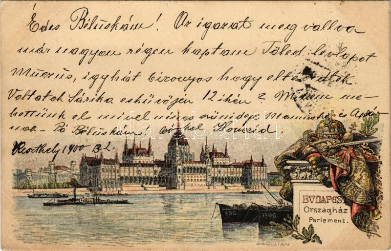 Leírás: 1900 (Vorläufer) Budapest V. Ezredéves Országos Kiállítás, Országház, Parlament. 2 Kr. barna Ga. s: Morelli