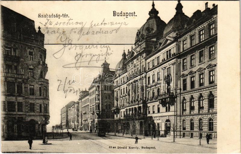 1904 Budapest V. Szabadság tér, villamos. Divald Károly 63. https://www.darabanth.com/hu/36-Nagyaukcio/36.1/Kepeslapok/Magyarorszag~15417/1904-Budapest-V-Szabadsag-ter-villamos-Divald-Karoly-63~II2469317