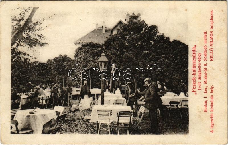 Leírás: 1908 Budapest XI. Kelenföld, Fészek halászcsárda (volt Singhoffer-féle), kert. Kelló Vilmos tulajdonos, Mohai út 8. (EK)