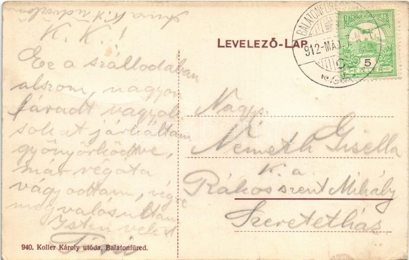 Leírás: 1912 Balatonfüred, Müllecker étterem és kávéház, terasz. Koller Károly utóda kiadása (EK)