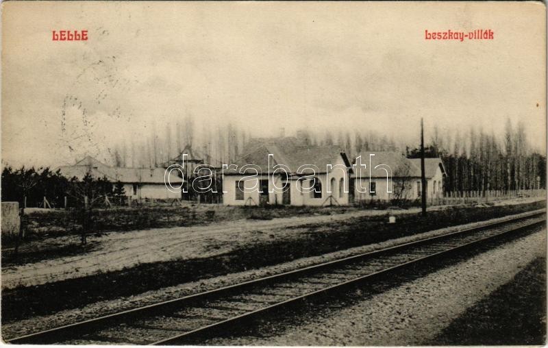 Leírás: 1913 Balatonlelle, Lelle; Leszkay Irénke telepi villák, vasúti sín. Steiner László kiadása