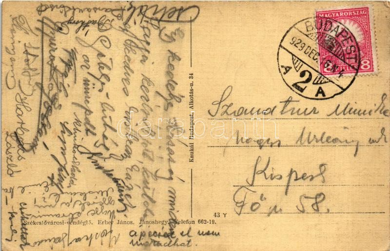 1929 Budapest XII. Erber János Jánoshegyi nagyvendéglő bejárata és saj... https://www.darabanth.com/hu/36-Nagyaukcio/36.1/Kepeslapok/Magyarorszag~15417/1929-Budapest-XII-Erber-Janos-Janoshegyi-nagyvendeglo-bejarata-es-sajat-kiadasa-EK~II2488327
