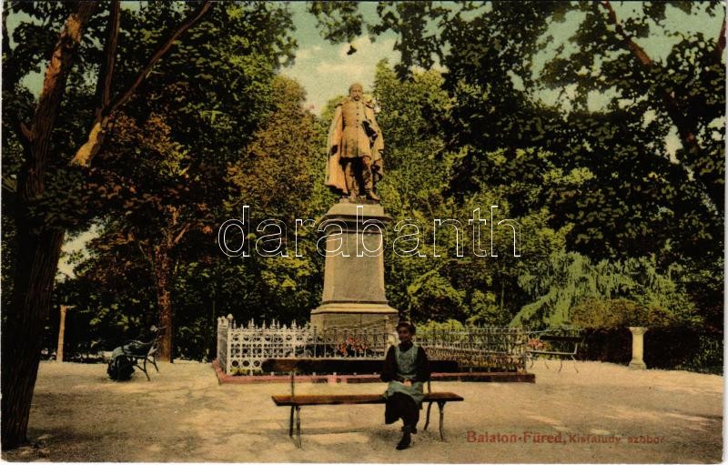Balatonfüred, Kisfaludy szobor. Koller Károly József kiadása https://www.darabanth.com/hu/36-Nagyaukcio/36.1/Kepeslapok/Magyarorszag~15417/Balatonfured-Kisfaludy-szobor-Koller-Karoly-Jozsef-kiadasa~II2488167