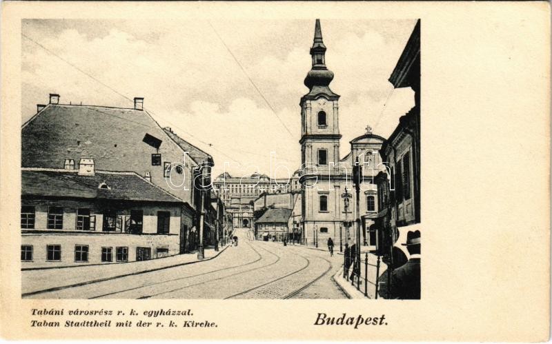 Budapest I. Tabán, városrész, római katolikus egyház, villamossínek https://www.darabanth.com/hu/36-Nagyaukcio/36.1/Kepeslapok/Magyarorszag~15417/Budapest-I-Taban-varosresz-romai-katolikus-egyhaz-villamossinek~II2481692