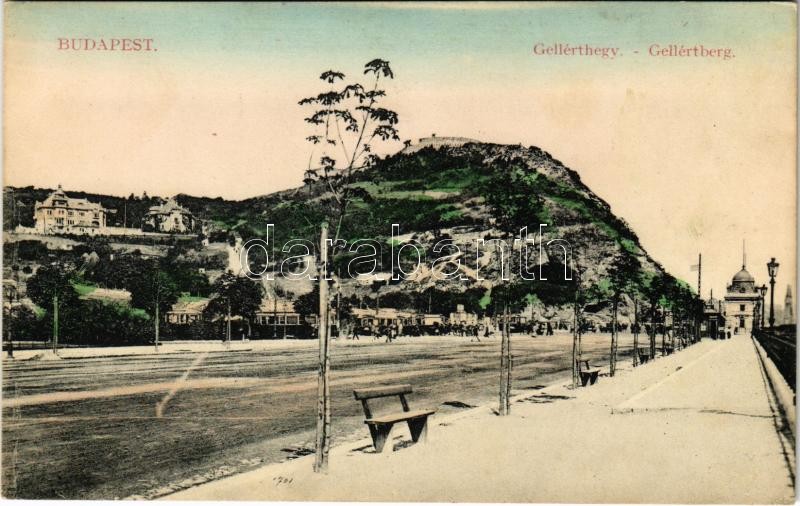 Leírás: Budapest XI. Gellérthegy, villák, Gellért tér a szálloda megépítése előtti időkben a villamos végállomás volt