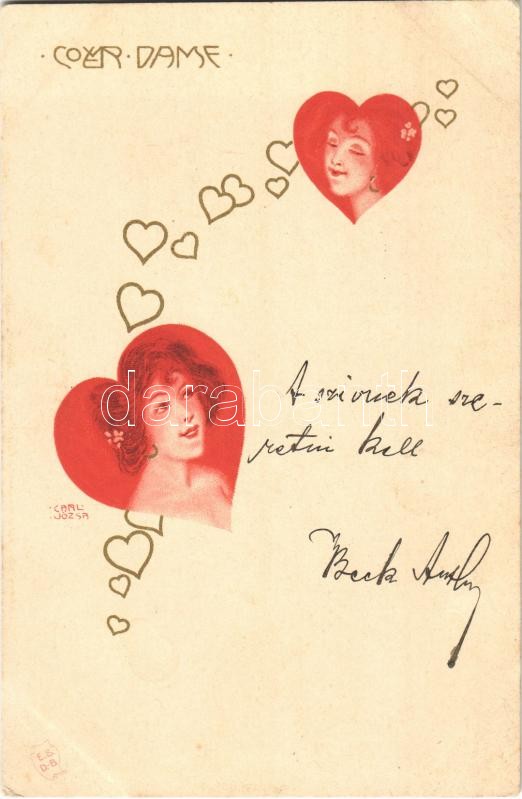 Coeur Dame / Art Nouveau lady. E.S.D.B. litho s: Carl Józsa https://www.darabanth.com/hu/36-Nagyaukcio/36.1/Kepeslapok/Muveszlapok~15499/Coeur-Dame-Art-Nouveau-lady-ESDB-litho-s-Carl-Jozsa~II2362090