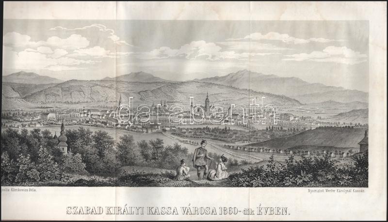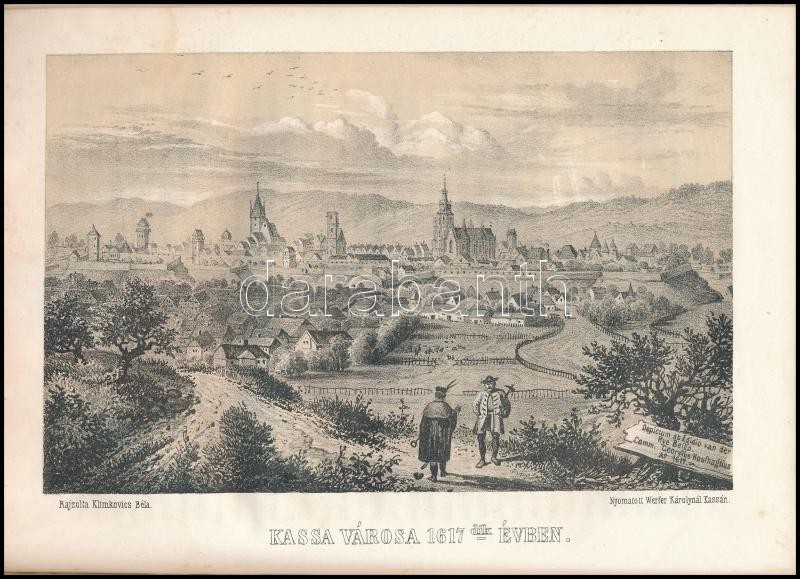 Tutkó József: Szabad királyi Kassa városának történelmi évkönyve. Kassa, 1861, Werfer Károly, 1 (címkép, litográfia) t.+ X+11-233+1 p.+5 (litográfiák) t. + 1 (Szabad királyi Kassa városának alaprajza, térkép, kőnyomat, 28x27,5 cm) t. Átkötött félvászon-kötés, kopott, foltos, kissé laza fűzéssel.