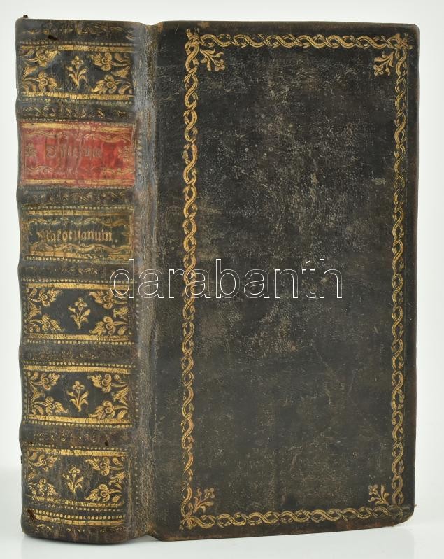 Leírás: Officium Rakoczianum, sive varia pietatis exercitia cultui divino, magne matris Mariae, sanctorumque honori debita. Editio novissima, omnibus proribus auctior, et locupletior. Budae, 1782 Typ. Regiae Universitatis. 22+509 + (6) p- 12 egészoldalas rézmetszetű képpel. Korabeli aranyozott egészbőr kötésben, néhány korabeli bejegyzéssel, pecséttel