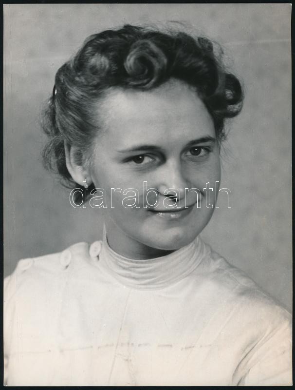 Leírás: 1955 Dr. Kelemen Vera (1934-2020) Ifjúsági világbajnok, Univesiade győztes tőrvívónő, szemészfőorvos, fotó, a hátoldalán feliratozva, 24x18 cm