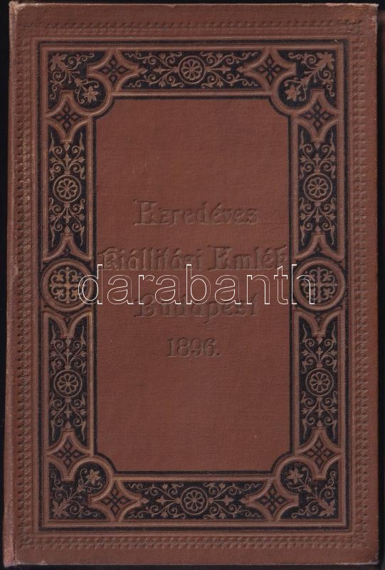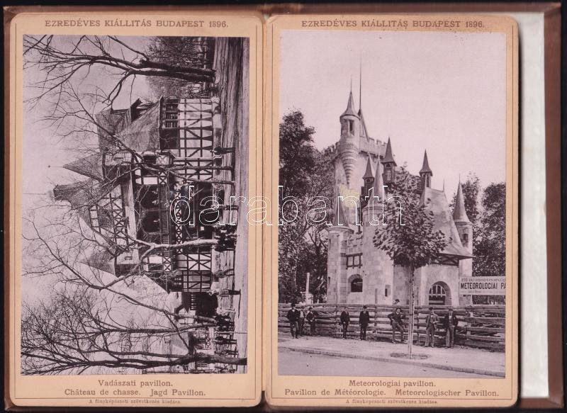 Ezredéves Kiállítás Budapest 1896. Leporello 12 db keményhátú kabinetfotóval, Ősbuda vára Haditengerészet és a Városligetben emelt építmények. Aranyozott egészvászon kötésben, kis kopással 17x11 cm