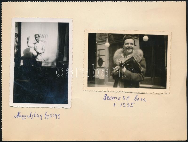 Nagyajtay György (1909-1993) színész fotója és Szemere Vera (1923-1995) színésznő fotója papírlapon,az egyik fotó két sarkán, valamint a másik fotó felületén törésnyomokkal, 9x6,5 cm