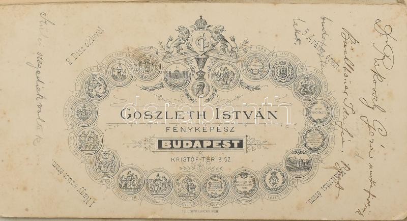 cca 1860-1900 Vegyes keményhátú portré tétel, egy család tagjai, rokonok, nevesített portrékkal, többek között feldebrői és szentbenedeki Bozóky Betty, Meixner Jánosné Koszgleba Erzsébet és más Koszgleba rokonok, Farkas József főjegyző, Büchlbauer család tagjai, dr. Tóth János, Bozóky Mária, dr. Rakovszky Géza és neje, stb., 10,5×6 és 20,5×11 cm közötti méretekben
