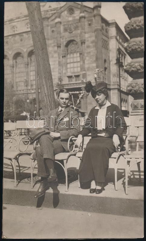 cca 1930 Elegáns fiatal pár a Dunacorson. 15x26 cm