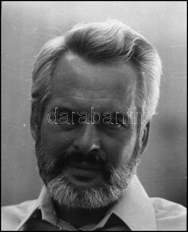 cca 1973 Latinovits Zoltán (1931-1976) Kossuth-díjas színművész portréja, vintage NEGATÍV, Pánczél György (1920-?) filmtörténész hagyatékából (film- és színházifotó-gyűjteményéből), 7x6 cm