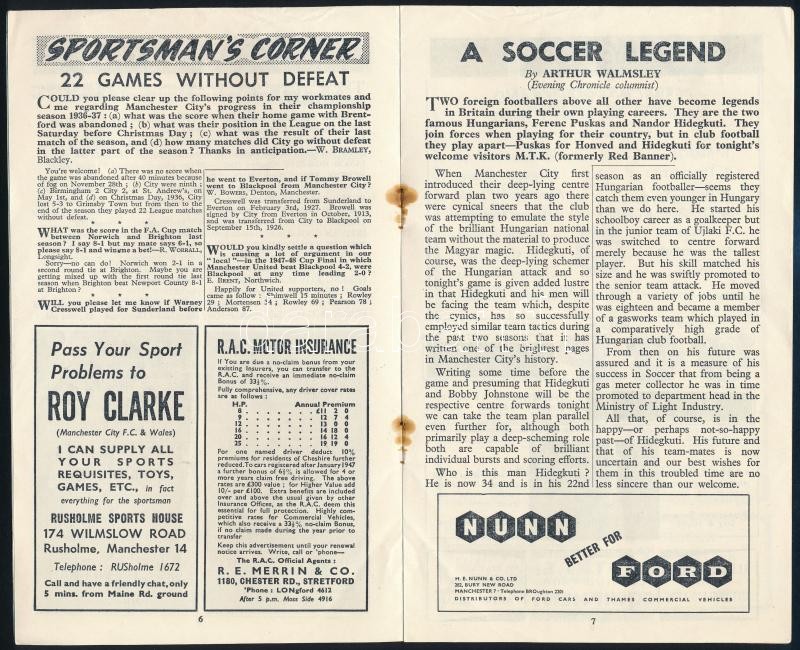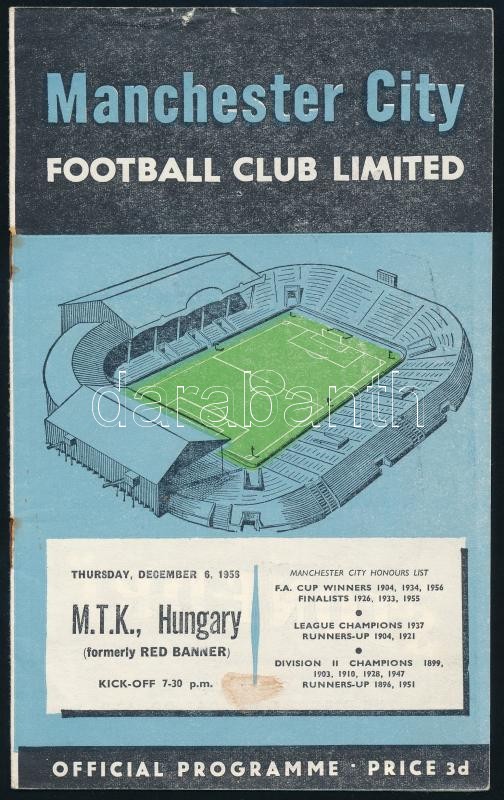 1953 MTK . Manchester United labdarúgómérkőzés meccsfüzet 16 p / Footb... https://www.darabanth.com/hu/36-Nagyaukcio/36.1/Mutargy-papirregiseg-egyeb/Nyomtatvanyok~15522/1953-MTK-Manchester-United-labdarugomerkozes-meccsfuzet-16-p-Football-match-booklet~II2462825