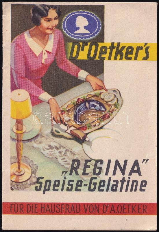 cca 1920-1930 Dr. Oetker's "Regina" Speise-Gelatine, zs... https://www.darabanth.com/hu/36-Nagyaukcio/36.1/Mutargy-papirregiseg-egyeb/Nyomtatvanyok~15522/cca-1920-1930-Dr-Oetkers-Regina-Speise-Gelatine-zselatinnal-keszitheto-etelek-receptfuzete~II2489041