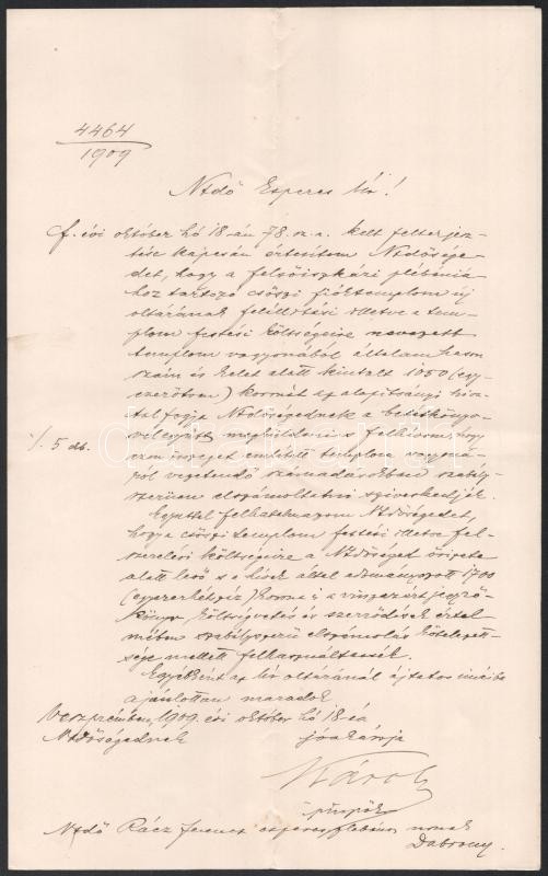 1909 Báró Hornig Károly (1840-1917) bíboros, veszprémi püspök által al... https://www.darabanth.com/hu/36-Nagyaukcio/36.1/Mutargy-papirregiseg-egyeb/Okmanyok~15148/1909-Baro-Hornig-Karoly-1840-1917-biboros-veszpremi-puspok-altal-alairt-okirat~II2488660