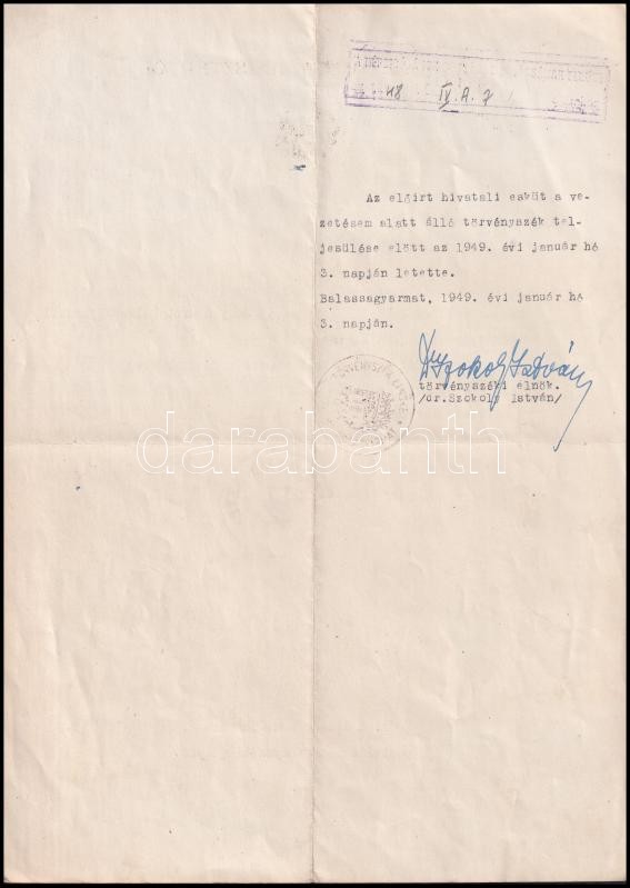1948 Ries István (1885-1950) szociáldemokrata politikus, igazságügy-miniszter (1945-1950) (1950-ben koholt vádak alapján bebörtönözték, majd a börtönben agyonverték) által aláírt okirat törvényszéki bírói kinevezésről, pecséttel + hozzá tartozó levél