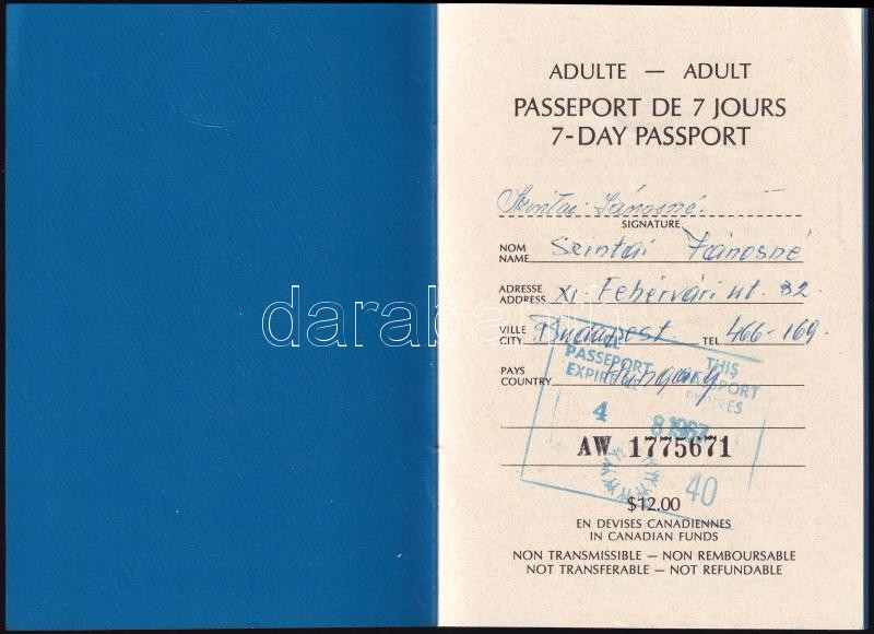 1967 Expo 67 Passeport de 7 Jours, 7-day Passport / az 1967-es montrea... https://www.darabanth.com/hu/36-Nagyaukcio/36.1/Mutargy-papirregiseg-egyeb/Okmanyok~15148/1967-Expo-67-Passeport-de-7-Jours-7-day-Passport-az-1967-es-montreali-vilagkiallitasra-szolC3~II2489064