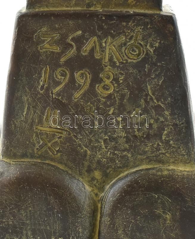 Leírás: Zsakó István (1954- ): Piramisnő. Öntött, patinázott bronz. Üreges rész gipsszel kiöntve. Jelzett: Zsakó 1998 (II/X) m: 15 cm