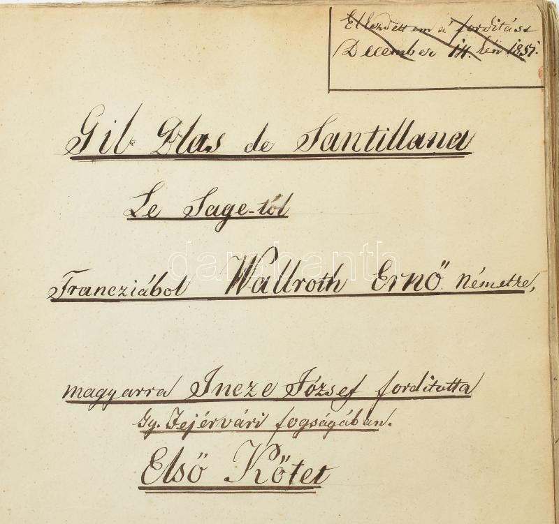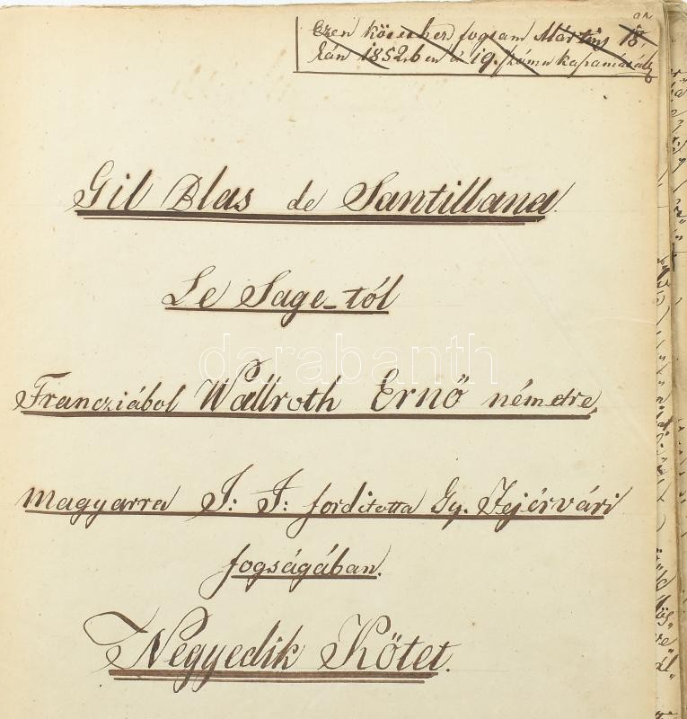 https://www.darabanth.com/hu/36-Nagyaukcio/36.1/Mutargy-papirregiseg-egyeb/Tortenelmi-dokumentumok-keziratok-erdekessegek~15279/1851-1852-Incze-Jozsef-1797-1886-honved-szazados-kezirata-Alain-Rene-Le-Sage-Gil-Blas-c~II2479047