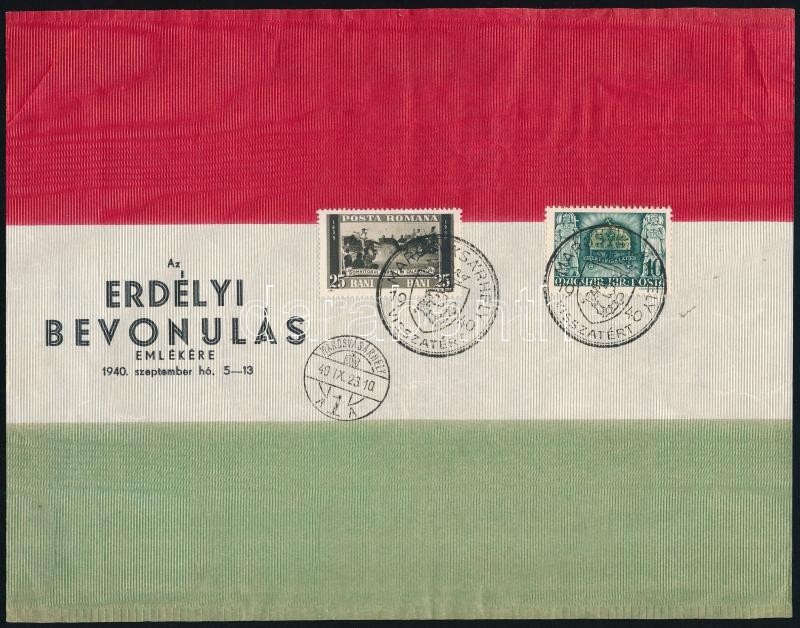 1940 Erdélyi bevonulás emlékére. magyar trikolor, alkalmi bélyegzéssel... https://www.darabanth.com/hu/36-Nagyaukcio/36.1/Mutargy-papirregiseg-egyeb/Tortenelmi-dokumentumok-keziratok-erdekessegek~15279/1940-Erdelyi-bevonulas-emlekere-magyar-trikolor-alkalmi-belyegzessel-Marosvarhely-visszate~II2489562