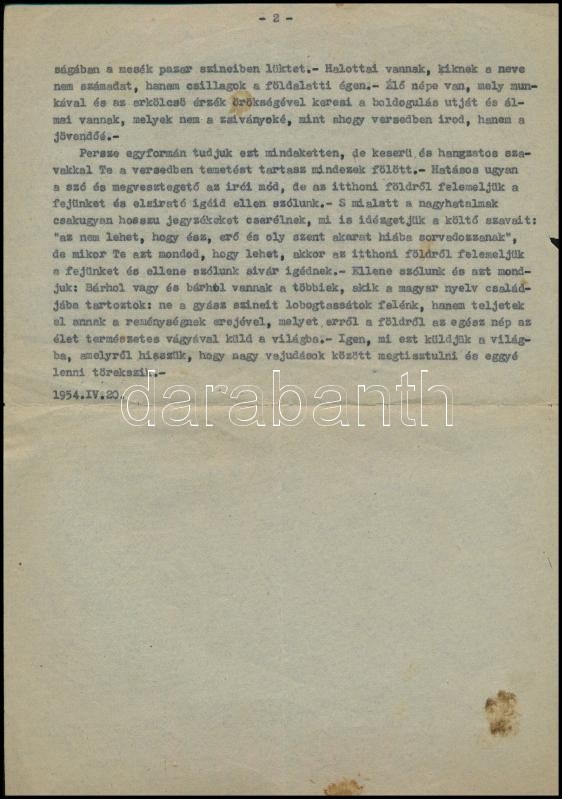 1945, 1954 Márai Sándor lebombázott Mikó utca- Logodi utca sarkán álló házával kapcsolatos kérvény a városi tanácshoz, valamint Tamási Áron író levelének gépelt váltzozata