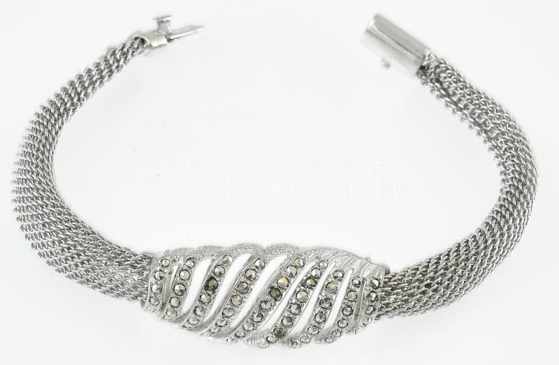 Leírás: Ezüst (Ag) Karlánc markazit ékítéssel. Jelzett. Jó állapotú. bruttó: 24 g, h: 20 cm