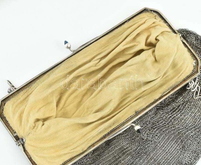 Leírás: Ezüst (Ag) Nagyméretű színházi táska Z I monogrammal. Jelzés nélkül. Jó állapotú. bruttó: 360 g, m: 19x20 cm, lánc h: 60 cm