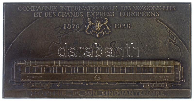 France 1926. "SOUVENIR DE SON CINQUANTENAIRE - COMPAGNIE INTERNATIONALE DES WAGONS-LITS ET DES GRANDS EXPRESS EUROPÉENS 1876-1926" one-sided Br commemorative plaque with "V. CANAIE" maker's mark. Sign.: Henry Dropsy (161,45g/46x91mm) C:AU,XF