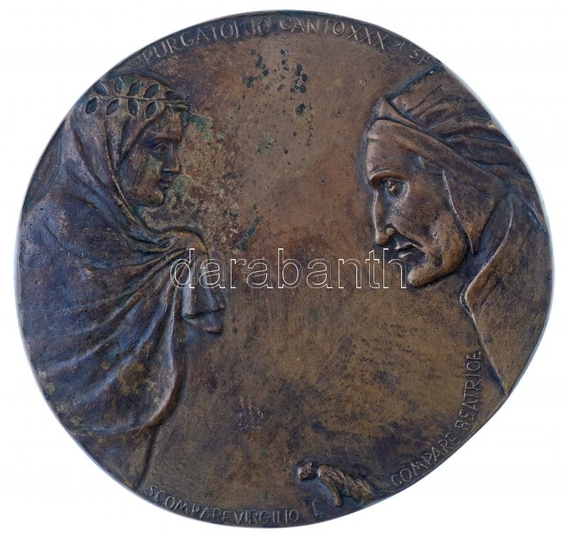 Leírás: Osváth Mária (1921- ) DN "Purgatorio Canto XXX 1-5P Scompare Virgilio E. Compare Beatrice" egyoldalas Br plakett (~190mm) T:2 / Hungary ND "Purgatorio Canto XXX 1-5P Scompare Virgilio E. Compare Beatrice" one-sided Br plaque. Made by Mária Osváth (~190mm) C:XF