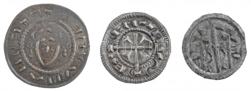 1116-1131. Denár Ag "II. István" 3xklf, egyik (Unger I. 36.) csak előlapi veret (0,38g, 0,19g, 0,38g) T:1,1- patina / Hungary 1116-1131. Denar Ag "Stephen II" 3xdiff, Unger I. 35. with only obverse strike (0,38g, 0,19g, 0,38g) C:UNC,AU patina Huszár: 45., 44., 47., Unger I.: 35., 36., 37.