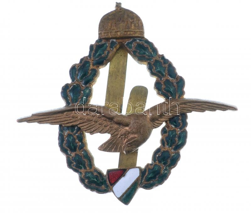 ~1930. "Tábori pilótajelvény" részben zománcozott Br jelvény, ferde rögzítőpántokkal, a turul rátéten "J. ZIMBLER WIEN VII." gyártói jelzéssel (64x61mm) T:1-,2 / Hungary ~1930. "Field Pilot Badge" partially enamelled Br badge with two oblique bands, on the Turul overlay "J. ZIMBLER WIEN VII." maker's mark (64x61mm) C:AU,XF