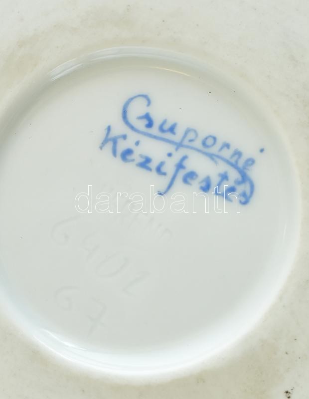 Leírás: Herendi oroszlántalpas kaspó, exkluzív kézi festéssel. Jelzett: Herend Csuporné és ritka formaszámmal: 6402-67. Apró karcok. m: 12,5 cm