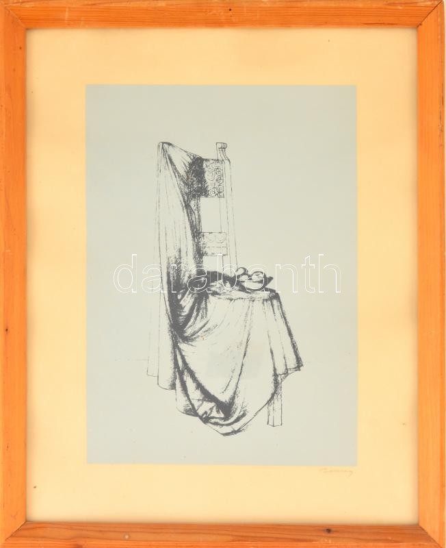 Leírás: Barcsay Jenő (1900-1988): Szék. Szitanyomat, papír, jelzett, üvegezett keretben, 32×22 cm