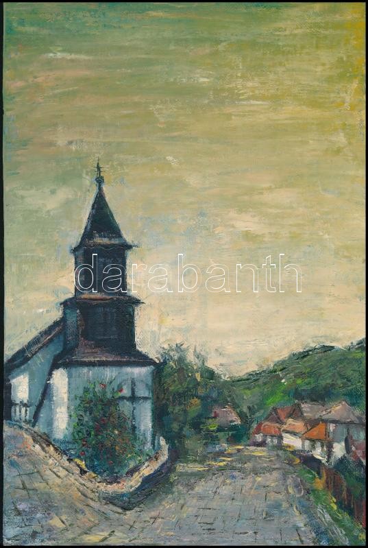 Leírás: Jelzés nélkül: Hollókő. Olaj, farost, 30×20 cm